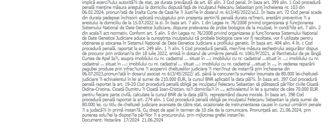 Pentru garantarea acestor sume, s-a menținut sechestrul asigurător asupra mai multor imobile din proprietatea inculpatului, până la acoperirea integrală a obligațiilor civile și judiciare.