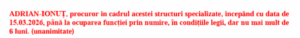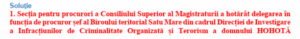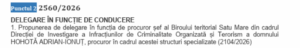 Secția pentru procurori a Consiliului Superior al Magistraturii a hotărât delegarea domnului procuror Adrian-Ionuț Hohotă în funcția de procuror-șef al Biroului Teritorial Satu Mare din cadrul Direcției de Investigare a Infracțiunilor de Criminalitate Organizată și Terorism (DIICOT), începând cu data de 15 martie 2026, până la ocuparea funcției prin numire, în condițiile legii, dar nu mai mult de 6 luni. Hotărârea a fost adoptată în unanimitate de către membrii Secției pentru procurori, în ședința din data de 17 februarie 2026.