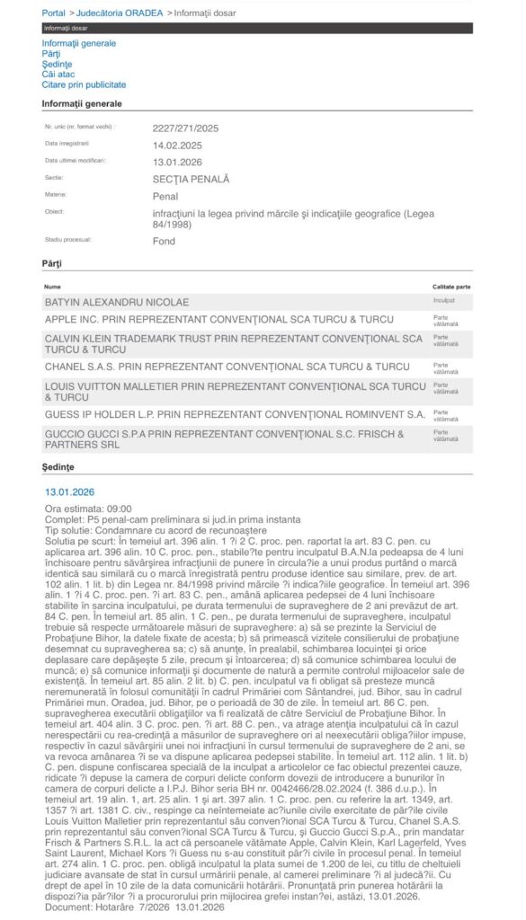 Povestea acestui dosar penal a început în 2022, când polițiștii de la Serviciul de Investigare a Criminalității Economice Bihor au observat mai multe anunțuri online cu produse „de firmă” la prețuri neobișnuit de mici.