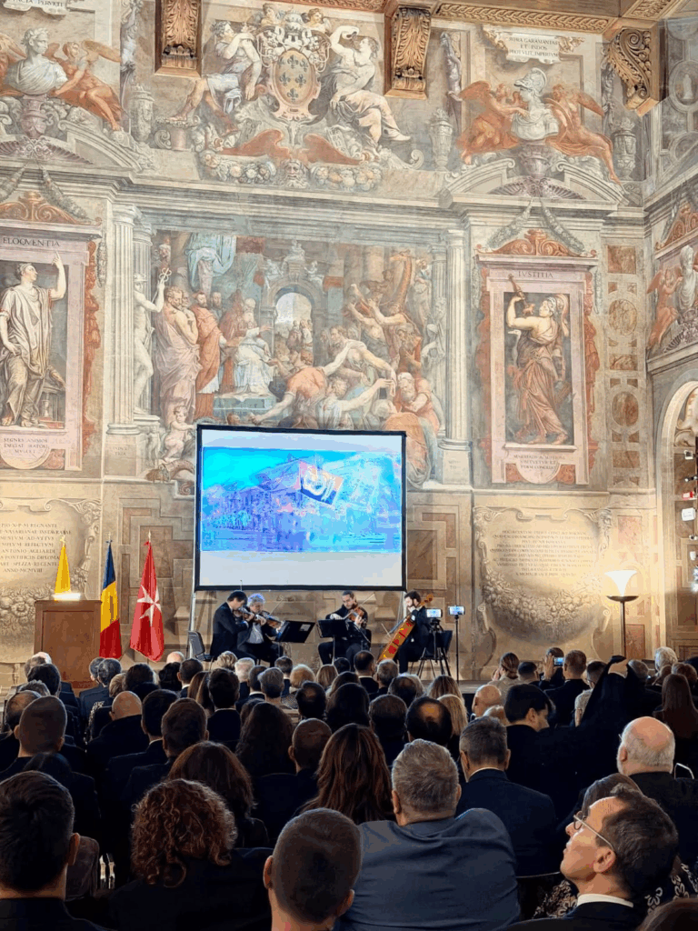 Evenimentul, găzduit de Vatican în saloanele nobile ale Palazzo della Cancelleria, un reper istoric și cultural, s-a bucurat de o prezență semnificativă, printre participanți numărându-se autorități ecleziastice și civile, reprezentanți ai corpului diplomatic, mediului academic, instituțional și profesional, presă. Într-un An Jubiliar bogat în evenimente care au acoperit domenii diverse, ambasadorul României, George Bologan, a mulțumit în discursul introductiv colaboratorilor și instituțiilor Sfântului Scaun și ale Ordinului Suveran de Malta pentru aportul prețios adus consolidării prezenței și imaginii României, precum și relației politico-diplomatice bilaterale.