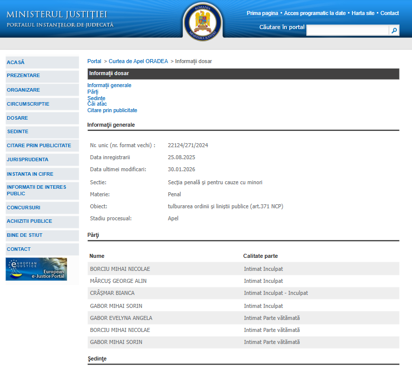 Curtea de Apel Oradea a înăsprit semnificativ pedepsele aplicate în dosarul scandalului violent produs în decembrie 2022, în localitatea Sântandrei, după ce a admis apelul formulat de Parchetul de pe lângă Judecătoria Oradea.