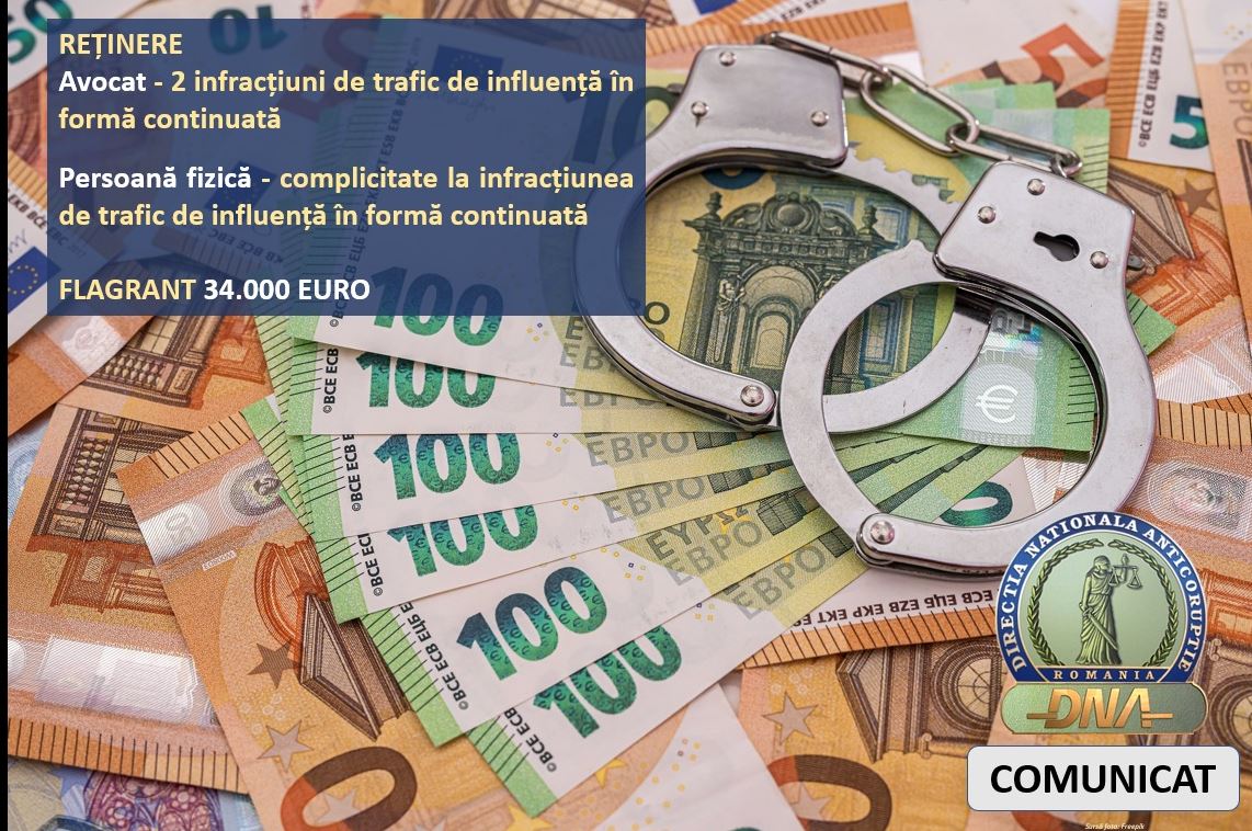 Procurorii DNA – Serviciul Teritorial Craiova au dispus reținerea pentru 24 de ore a avocatului R.R.N., din Baroul Olt, acuzat de comiterea a două infracțiuni de trafic de influență, și a lui M.N.C., cercetat pentru complicitate la aceeași infracțiune. Potrivit anchetatorilor, avocatul ar fi pretins, direct și prin intermediar, sume de până la 30.000 de euro pentru a-și exercita influența asupra unor funcționari din Spitalul Municipal Caracal și Serviciul Județean de Ambulanță Olt, promițând angajări pe posturi de asistenți medicali și ambulanțieri. Cei doi au fost prinși în flagrant de procurorii anticorupție în momentul primirii banilor, urmând a fi prezentați Curții de Apel Craiova cu propunere de arestare preventivă pentru 30 de zile.