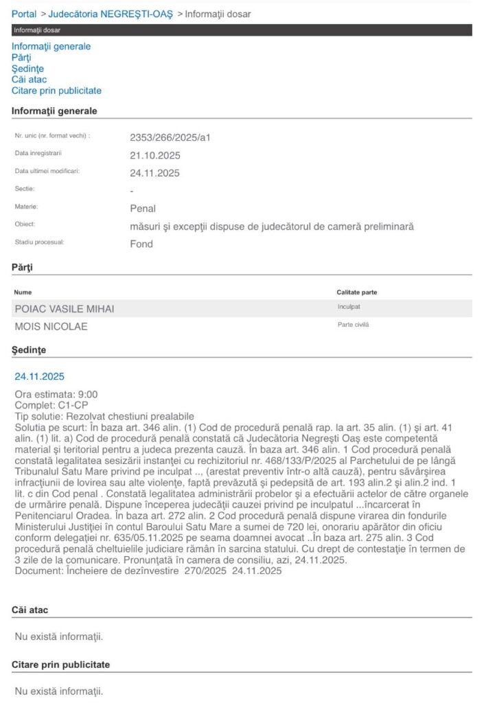 Un caz de agresiune violentă din localitatea Boinești, județul Satu Mare, ajunge în fața judecătorilor după ce Judecătoria Negrești-Oaș a dispus oficial începerea judecății, printr-o hotărâre pronunțată în camera de consiliu la data de 24 noiembrie 2025.