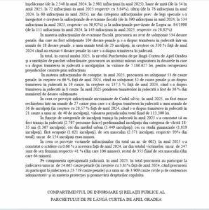 Rezultatele anului 2025 confirmă poziția de lider a Parchetului de pe lângă Curtea de Apel Oradea în cadrul Ministerului Public.
