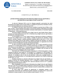 Parchetul de pe lângă Curtea de Apel Oradea a prezentat, în data de 9 februarie 2026, raportul de activitate pentru anul 2025, în cadrul Adunării generale a procurorilor din circumscripție. La ședință au participat reprezentanți ai Ministerului Public și ai Consiliului Superior al Magistraturii.