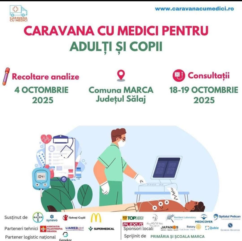 Acum, în al doilea weekend al lunii octombrie, Caravana revine pentru a finaliza procesul medical și pentru a extinde gama serviciilor oferite. Locuitorii din Marca și din satele învecinate vor beneficia de consultații medicale gratuitesusținute de o echipă multidisciplinară de specialiști, proveniți din prestigioase unități medicale precum Spitalul Clinic Județean Bihor, Spitalul Județean de Urgență Zalău, Spitalul Pelican Oradea, Medicover România și Medena Centru Medical.
