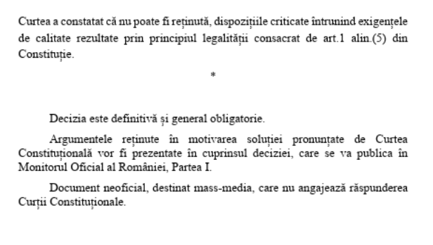 Postăm comunicatul de presă al CCR remis publicității azi, 25 noiembrie: