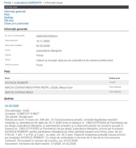 Dosarul a ajuns astfel la Judecătoria Marghita, unde a fost verificat în camera preliminară. Judecătorul a constatat că procedura este legală și a dispus începerea judecății pe fond.