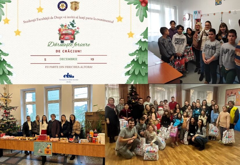Cadrele didactice ale Facultății de Drept din Oradea și studenții s-au mobilizat în perioada 4-19 decembrie în acțiunea deja tradiție “Dăruiește fericire de Crăciun. Fii parte din fericirea altora!” cu scopul de a aduce speranță și fericire semenilor.