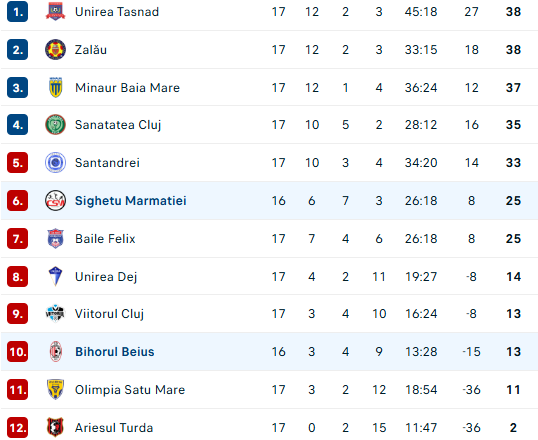 În cazul unui succes Bihorul Beiuș poate urca în clasament până pe locul 8 iar sărbătorile ar fi liniștite cu o zestre de 16 puncte.