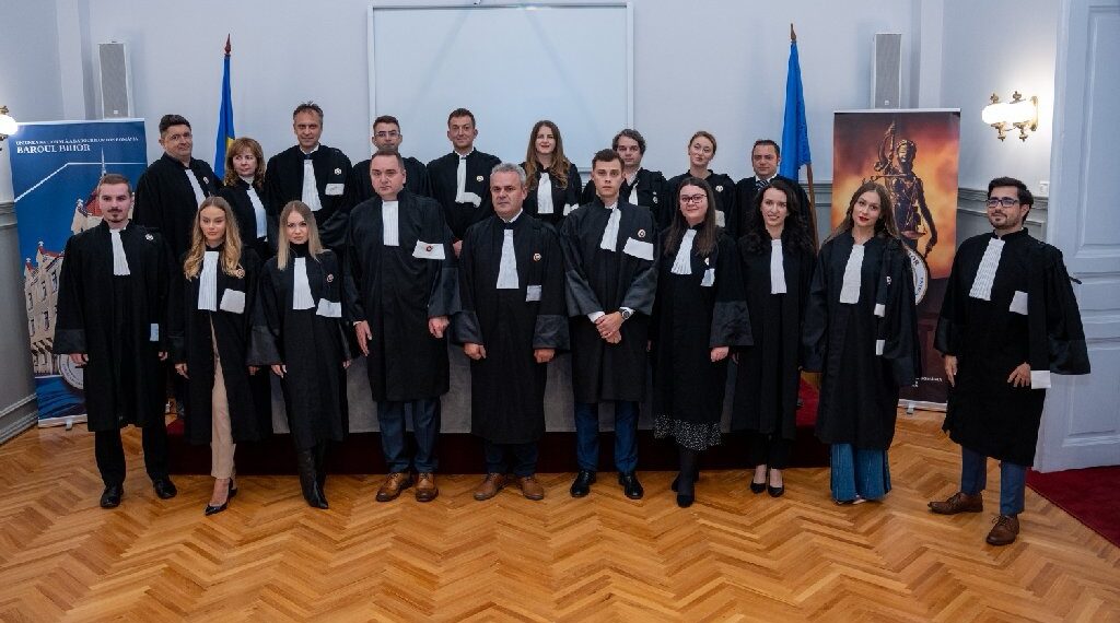 Opt avocați stagiari și doi definitivi au depus jurământul în fața Consiliului Baroului Bihor, îmbrăcați în robe și cu mâna pe Biblie, conform Legii nr. 51/1995 pentru organizarea și exercitarea profesiei de avocat.
