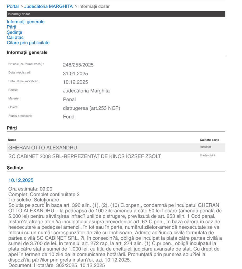 Un incident petrecut într-un cazinou a avut consecințe serioase pentru Gheran Otto Alexandru care, aflat sub influența alcoolului, a sfârșit prin a distruge geamul de la intrarea în local. Judecătoria a decis condamnarea acestuia la amendă penală și plata integrală a prejudiciului.