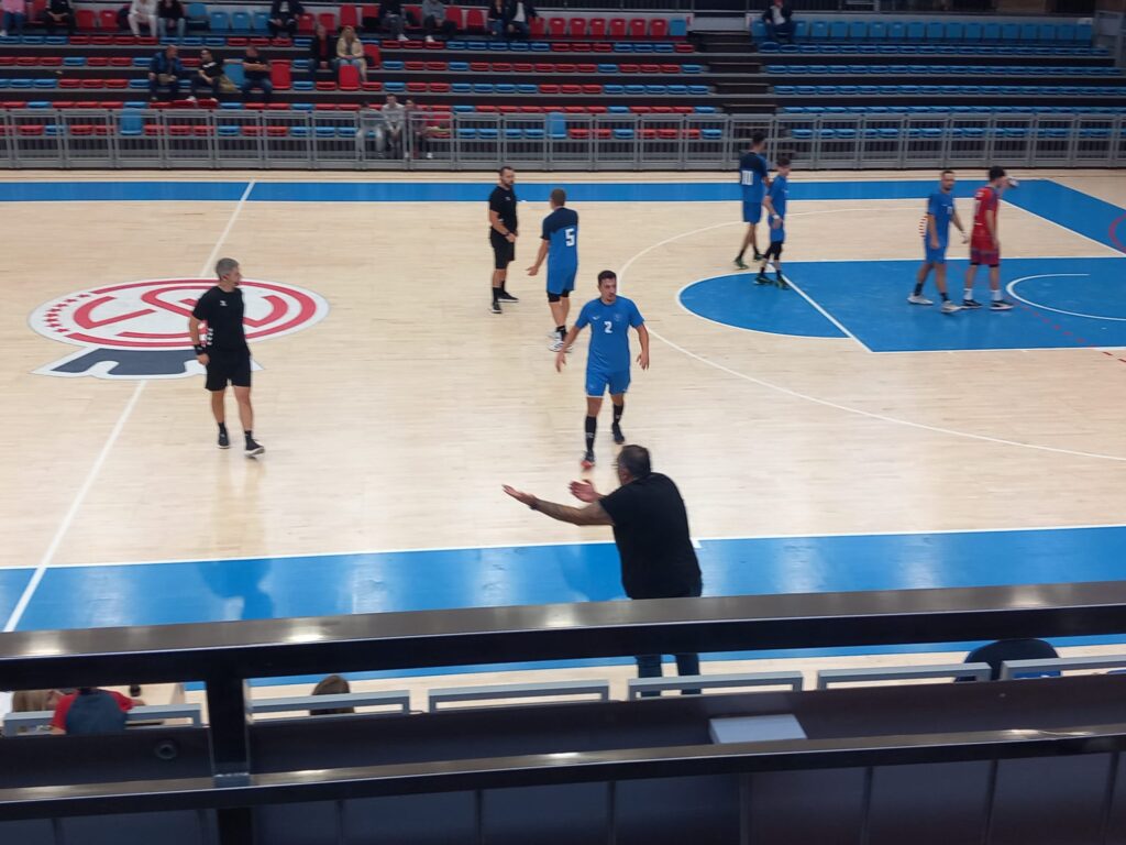Cele două echipe aveau maximum de puncte în clasament după trei etape însă pe teren n-a fost decât o echipă, cea orădeană. După un început destul de echilibrat, CSM Oradea a rezolvat cu bine o situație de dublă inferioritate și s-a desprins pe tabelă: 13-8. Diferența a crescut până la pauză la șapte goluri: 16-9. Finalul de repriză a adus și cartonașul roșu pentru bănățeanul Dima după o lovitură cu cotul.