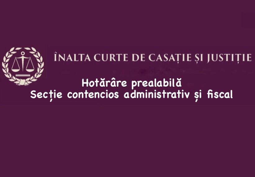 Înalta Curte de Casație și Justiție a admis în ședința din 29 mai sesizarea formulată de Curtea de Apel Suceava – Secţia de contencios administrativ şi fiscal privind pronunțarea unei hotărâri prealabile.