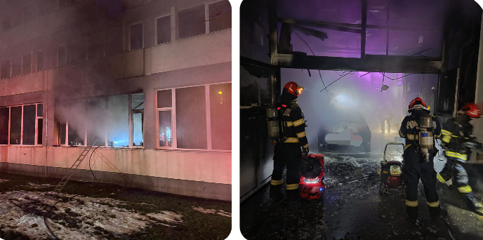 ‘Pompierii militari orădeni au intervenit pentru stingerea unui incendiu violent ce a cuprins un atelier și un laborator de inginerie din cadrul Unieversității Oradea, reușind să împiedice propagarea acestuia la celelalte laboratoare de la parter și la etajele superioare ale clădirii (P+2).