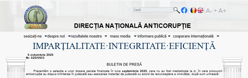 ” Prezentăm o selecție a unor dosare penale finalizate în luna septembrie 2025, care nu au fost mediatizate la zi, în care procurorii anticorupție au dispus trimiterea în judecată sau sesizarea instanței de judecată cu acord de recunoaștere a vinovăției, după cum urmează: