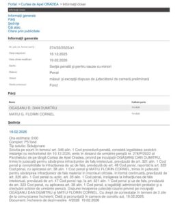 - dosarul a fost instrumentat de Parchetul de pe lângă Curtea de Apel Oradea, competent în cauză;