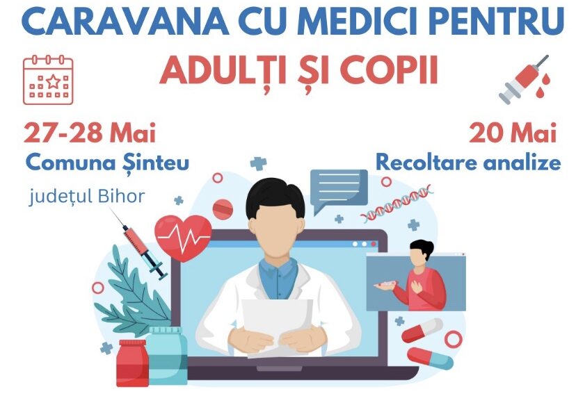 În weekendul acesta, 27-28 mai, localnicii din Comuna Șinteu, județul Bihor, vor beneficia de investigații și consultații medicale gratuite efectuate de către Caravana cu Medici Bihor.
