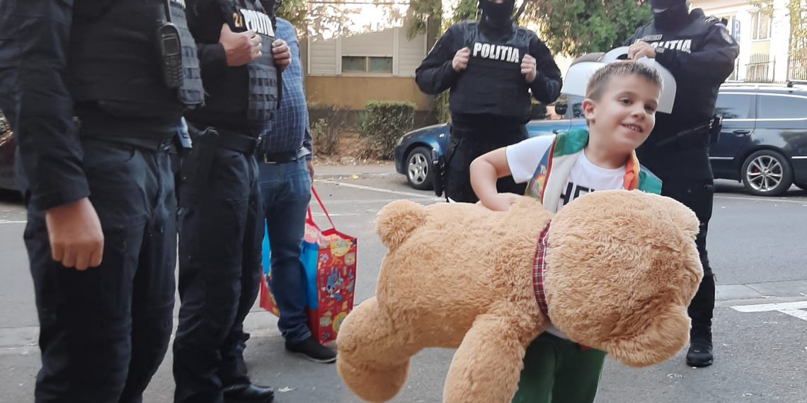Cadou inedit pentru Luca, un copil de 6 ani din Oradea, care a fost vizitat, chiar de ziua lui, de polițiștii bihoreni de la Serviciul pentru Acțiuni Speciale. Mare fan al ”mascaților”, băiețelul a fost extrem de încântat de sosirea luptătorilor care i-au adus tort și cadouri. Polițiștii au acceptat ca în acest fel să fie complicii părinților lui Luca, autorii surprizei puse la cale de ziua micuțului.