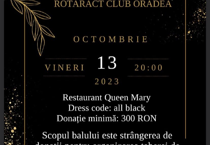 Cu grație și cu un profund spirit de dedicare, Rotaract Club Oradea are onoarea de a vă invita vineri 13 octombrie cu respect la un bal caritabil special organizat la Restaurant Quenn Mary, în cinstea celor două decenii de existență.