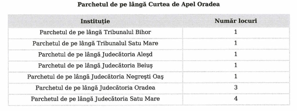 3 posturi la Parchetul de pe lângă Judecătoria Oradea;
