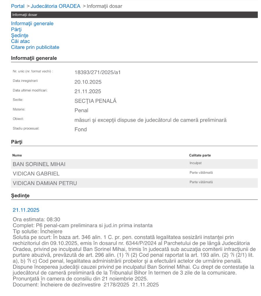 Decizia Judecătoriei Oradea: probe legale, procesul poate începe