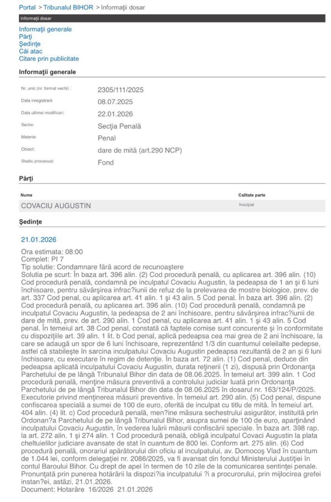 Covaciu Augustin a fost condamnat pentru: