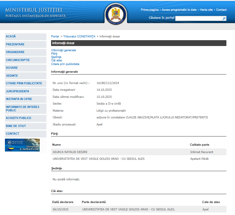 Hotărârea nu este definitivă, Universitatea de Vest „Vasile Goldiș” din Arad formulând apel împotriva sentinței primei instanțe.