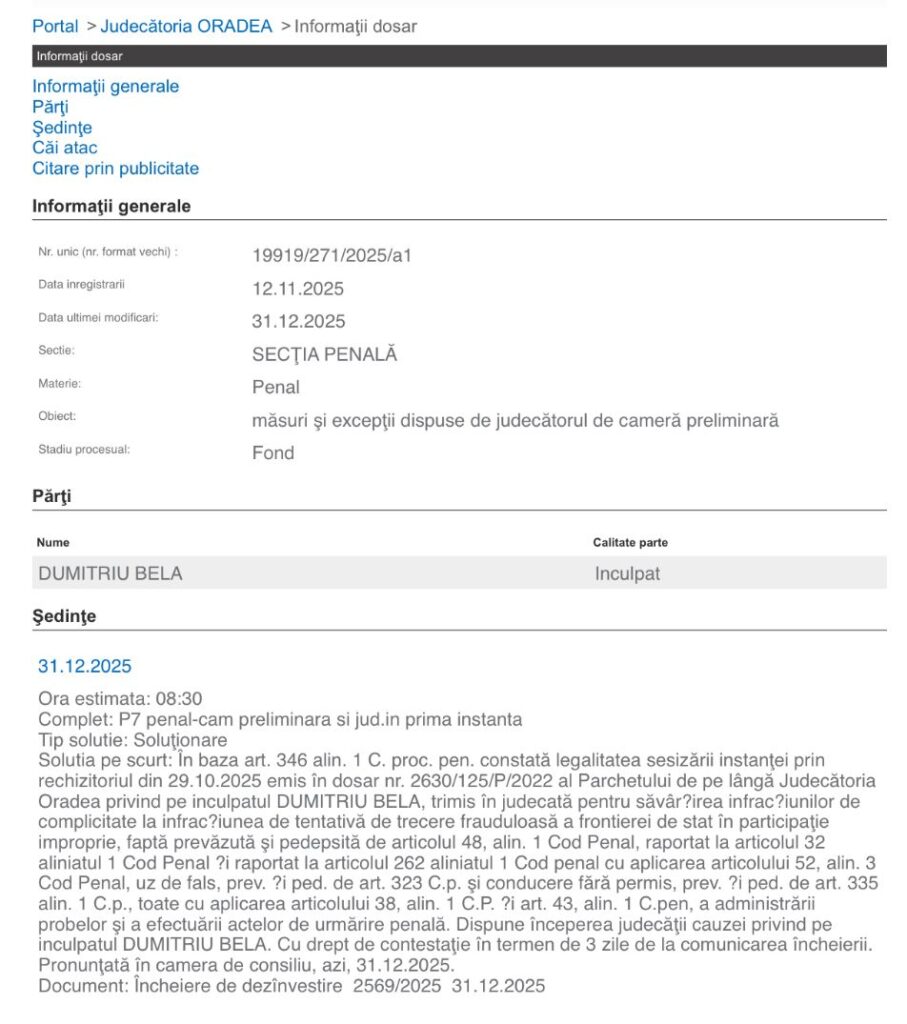 Un copil în vârstă de doar 8 luni, ascuns sub o pătură la picioarele mamei sale, într-o mașină oprită la frontieră, se află în centrul unui dosar penal care a ajuns oficial în faza de judecată. Judecătoria Oradea a decis, la finalul anului 2025, că dosarul este legal întocmit și că procesul poate începe.