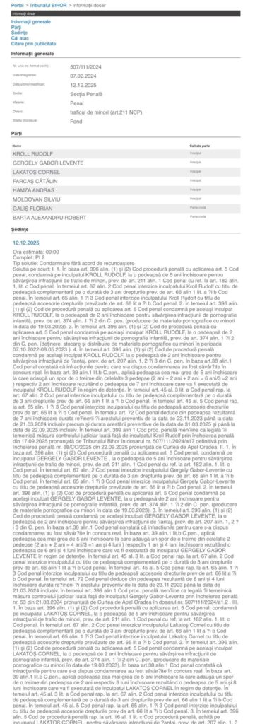 Tribunalul Bihor a pronunțat la data de 12 decembrie 2025 o sentință importantă într-un dosar de trafic de minori, pornografie infantilă și șantaj, în care au fost judecați șase inculpați. Pedepsele ajung până la 7 ani de închisoare cu executare, iar instanța a dispus și plata unor daune morale, confiscări de bunuri și măsuri restrictive.