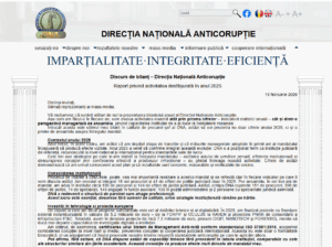 Direcția Națională Anticorupție a prezentat, la 19 februarie 2026, raportul de activitate pentru anul 2025, într-un discurs care a marcat totodată finalul mandatului procurorului-șef Marius Voineag. Bilanțul evidențiază consolidarea instituțională, scăderea semnificativă a ratei achitărilor, creșterea valorii bunurilor indisponibilizate și recunoașterea internațională a performanței DNA.