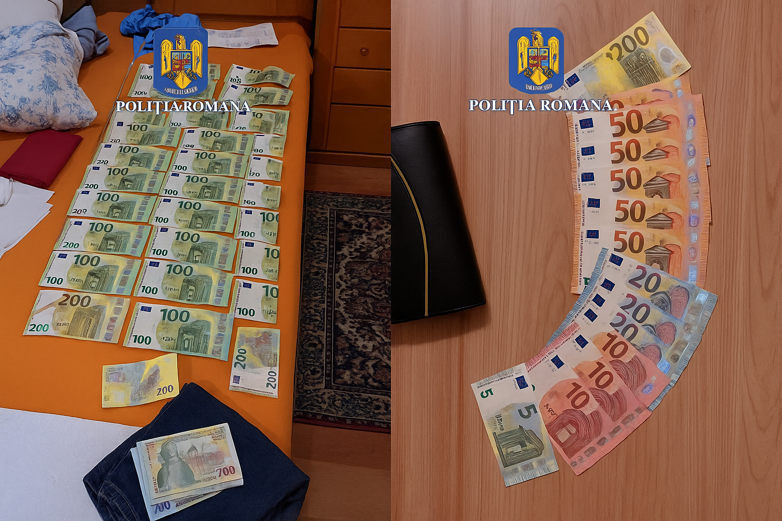 - s-au găsit sume importante: 18.520 lei, 8.315 euro, 200 USD și 15.000 HUF, considerate mijloace de probă.