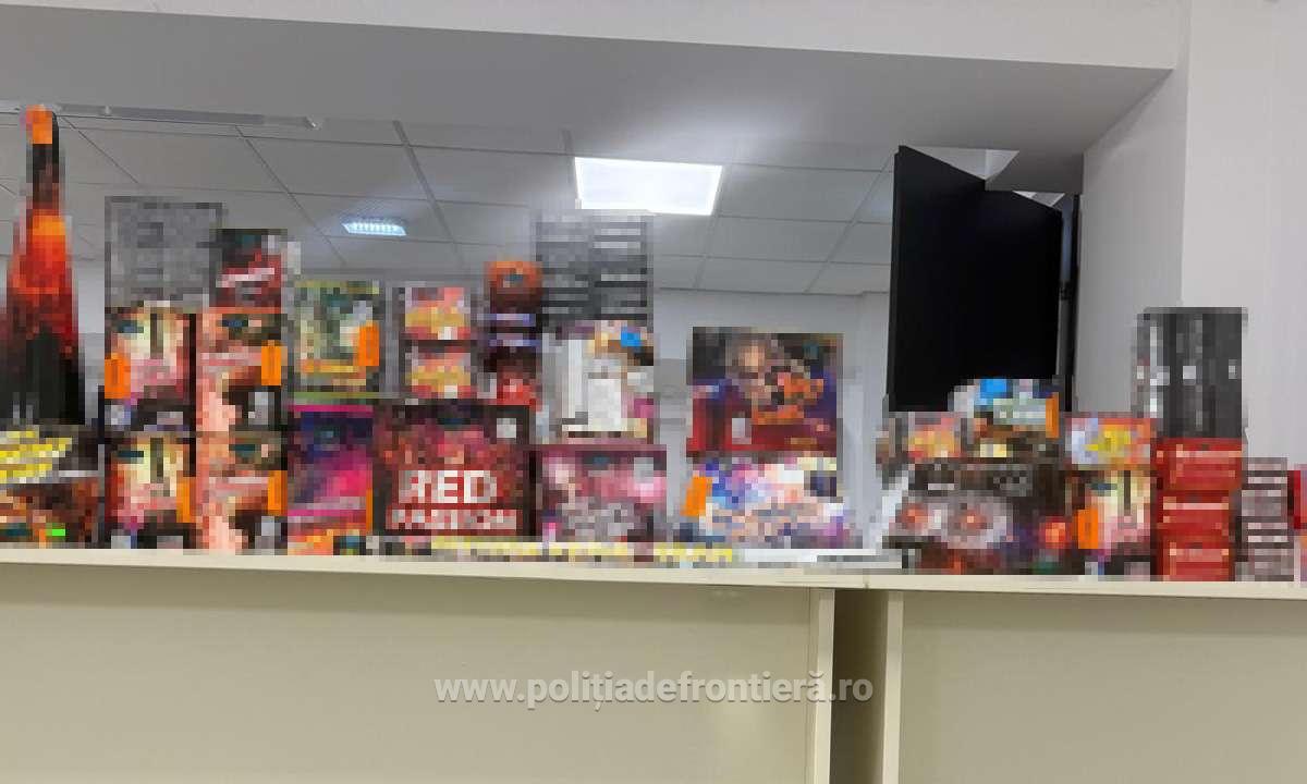 În urma verificării amănunțite a autovehiculului, oamenii legii au descoperit în portbagaj 42 de cutii cu materiale pirotehnice, cu o valoare estimată la 2.500 de lei.